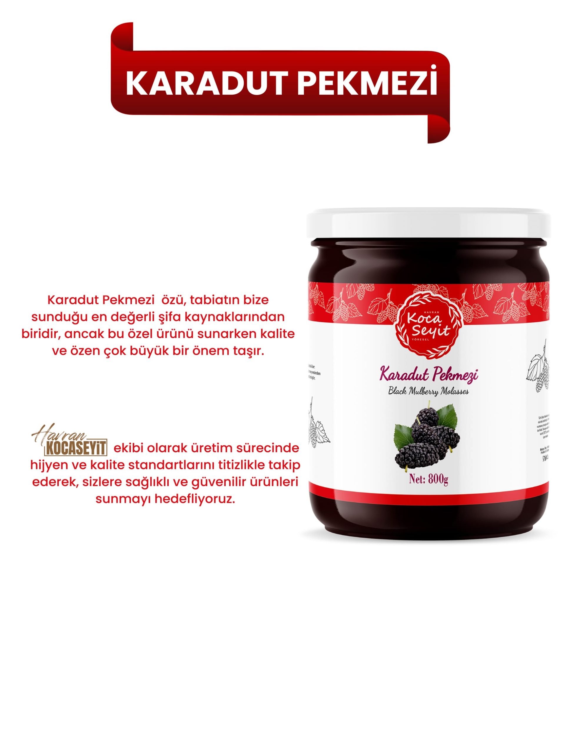 Titizlikle seçilen karadutlardan üretilen bu ürün, katkı maddesi içermeyen içeriğiyle temiz ve yoğun bir tat sunar.