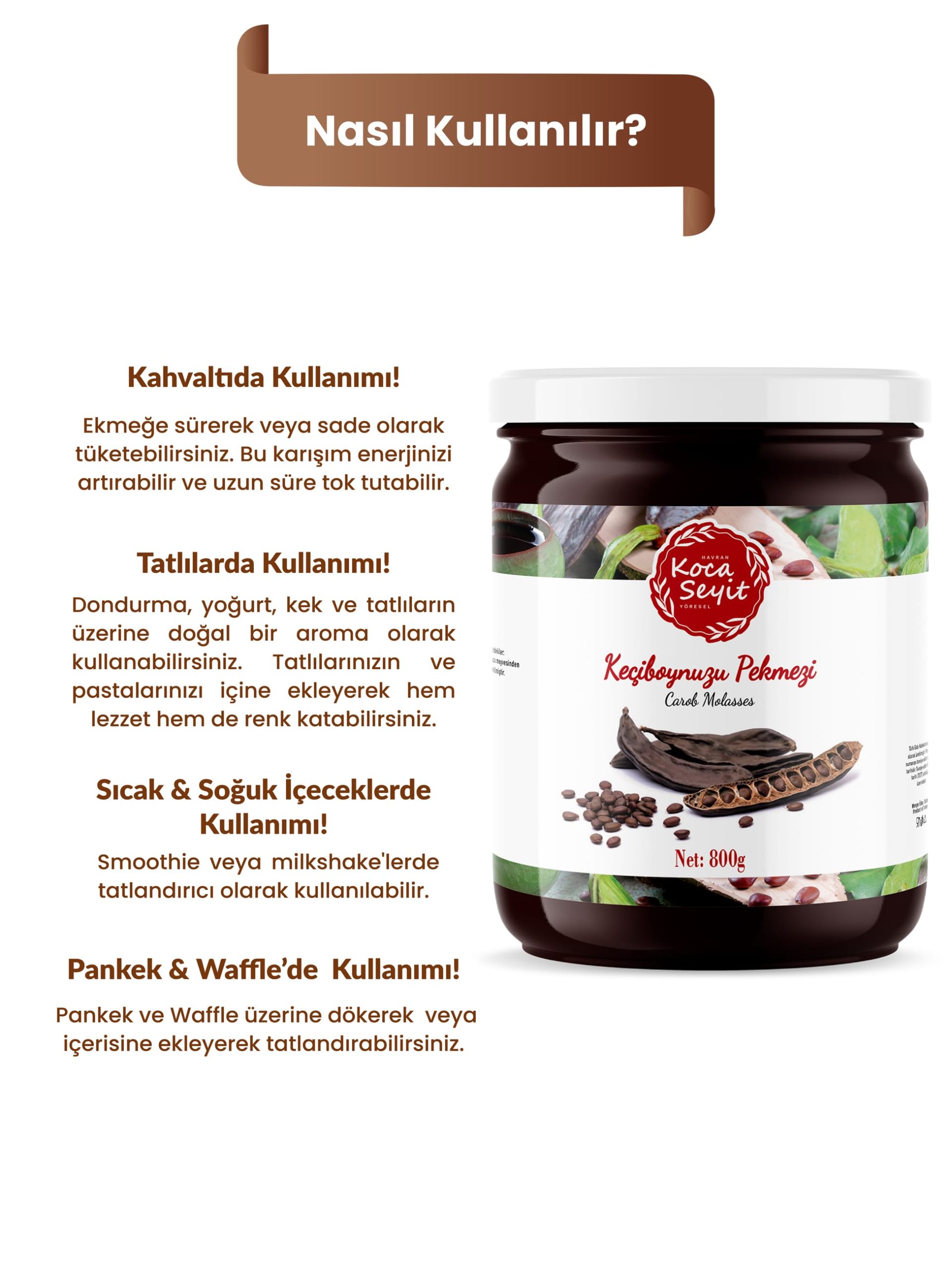 Keçiboynuzu meyvesi karakteristik kıvamı ve hafif tadıyla kahvaltılarınızda, tatlılarınızda ve içeceklerinizde harika bir lezzet tamamlayıcısıdır.