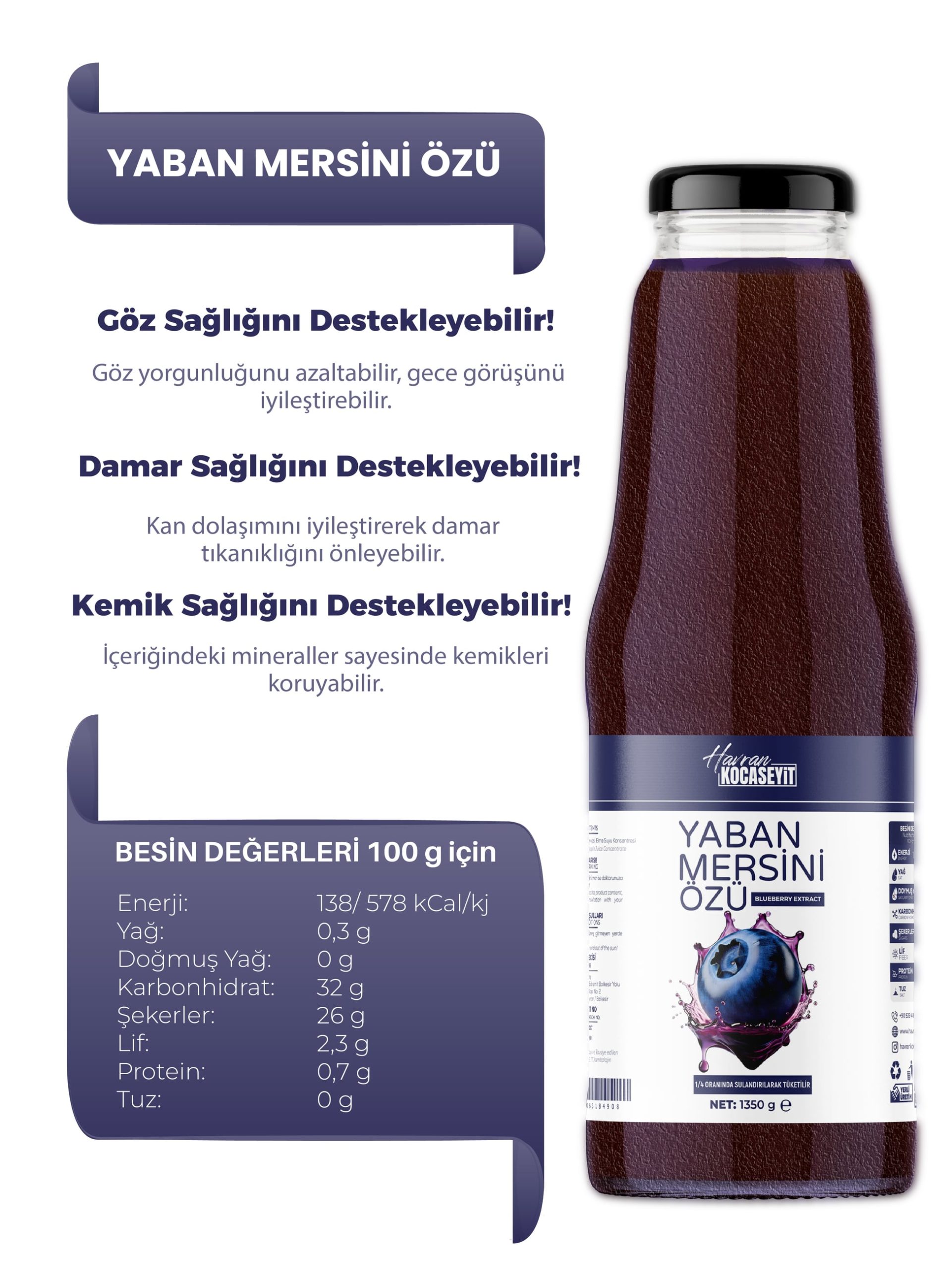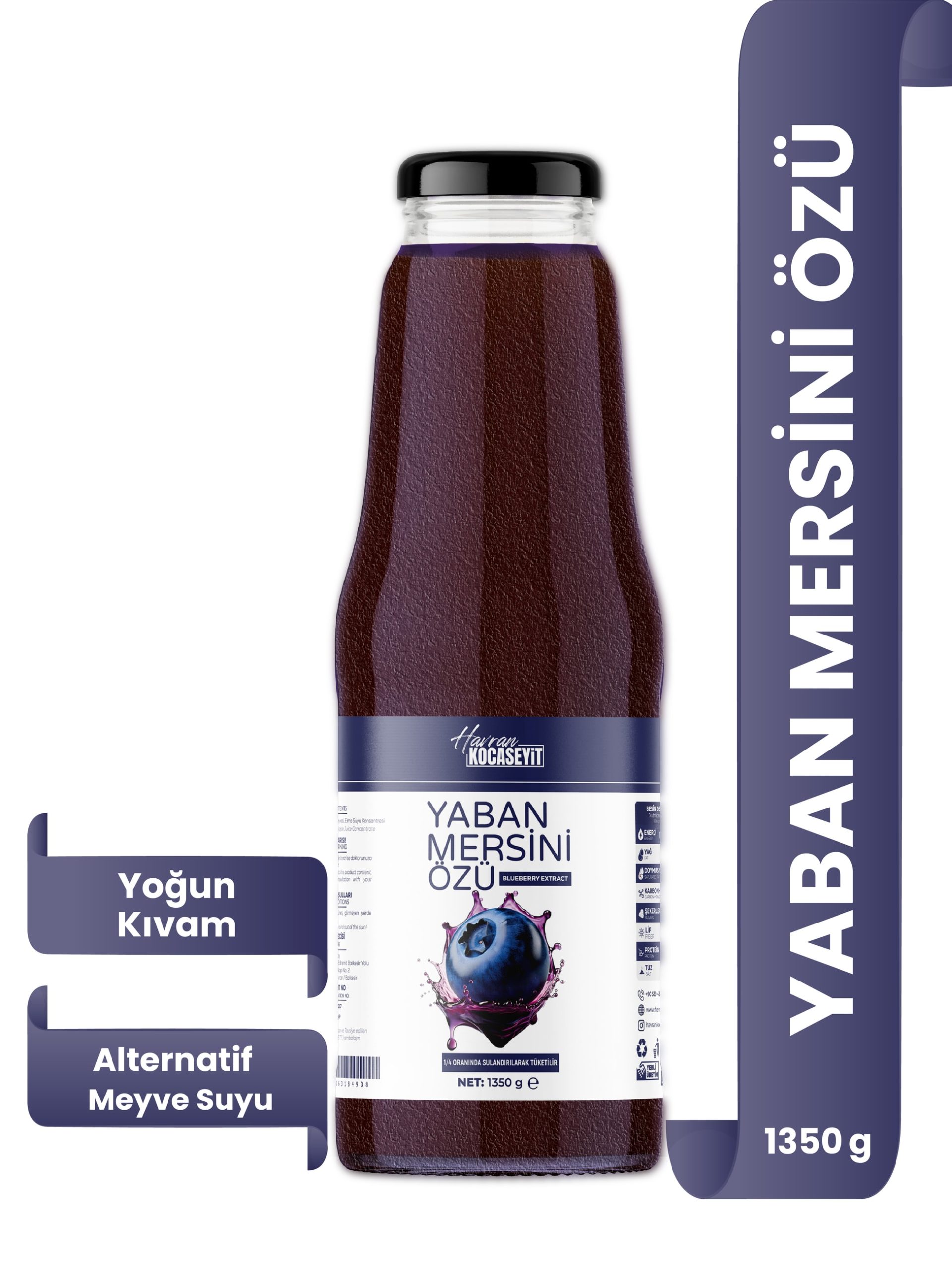 Havran Kocaseyit Yaban Mersini Özü, özenle seçilmiş taze yaban mersinlerinden elde edilen doğal bir üründür.